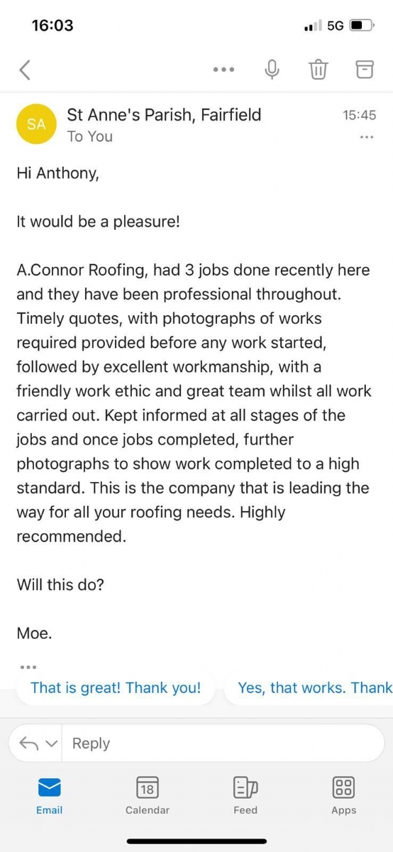We have no hesitation in recommending him to anyone who needs roofing work done.